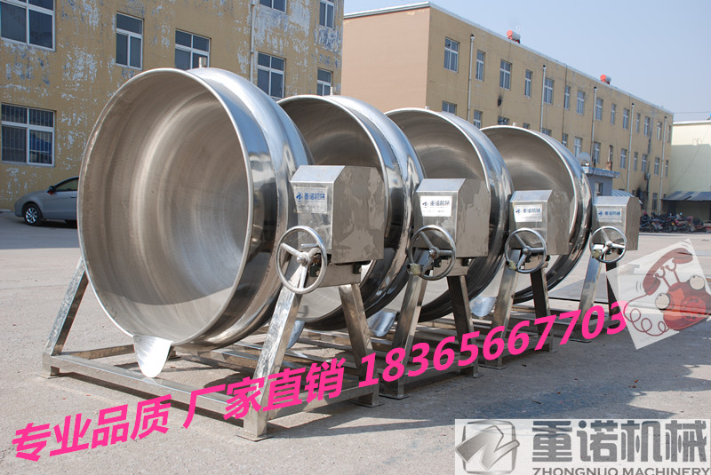 用途廣泛的優勢已經成為食品廠必備的食品加工設備,夾層受熱面積大,快速升溫,安全衛生。對于冰糖、豆瓣醬、甜面醬、花生醬、辣椒醬、牛肉醬、鹵肉、糯米等比較粘稠的食品我們建議選擇攪拌可傾斜夾層鍋,攪拌裝置可防止食品在加工的過程中糊鍋,由于這些產品比較粘稠,加工完成之后不容易從底部出料口流出,可通過可傾斜裝置傾斜鍋體將產品倒出。對于八寶粥、熬湯、蒸煮的用戶,根據自己工藝選擇固定立式的夾層鍋就可以了。