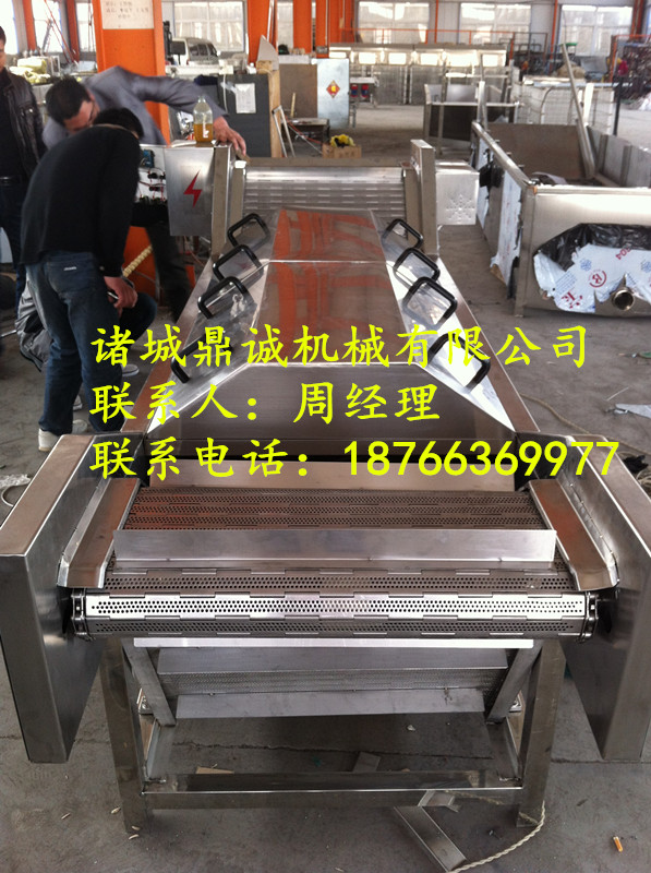 果蔬殺青機,金針菇菌類漂燙機是果蔬加工中護色工藝常需的熱燙處理理想設備。該機具有快速殺青。抑酶護色及時脫水冷卻,一次完成之特點,使果蔬保持原有的自然色澤。通過漂燙,制止了果蔬中酶的活性,以保持果蔬特有的鮮活色澤,散發蔬菜的青臭氣并保留香味,增進細胞的柔軟性,利用水分蒸發,為下道烘干脫水工序的工藝要求奠定良好的基礎。