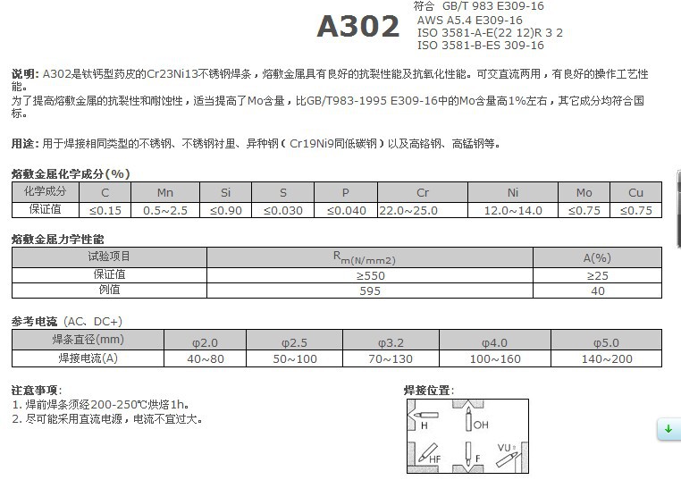 焊芯直徑: 3.2/4.0(mm) 焊接電流: 70~160(A)