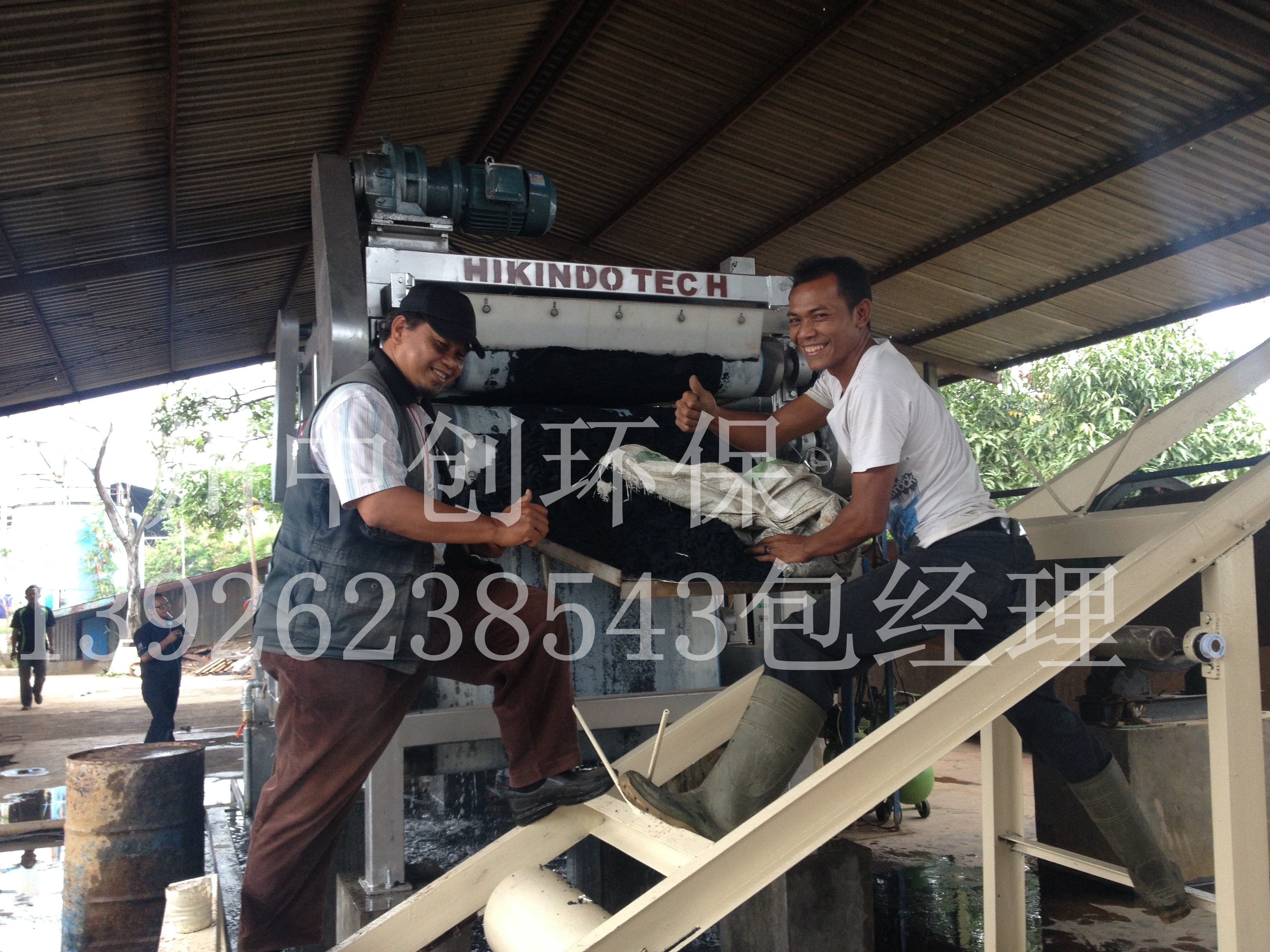 當物料被輸送鋪展到加長的重力預脫水區上,在重力的作用下自由水透過濾網背面而滲出分離,形成不流動狀態的污泥,然后隨著網帶的移動而夾持在