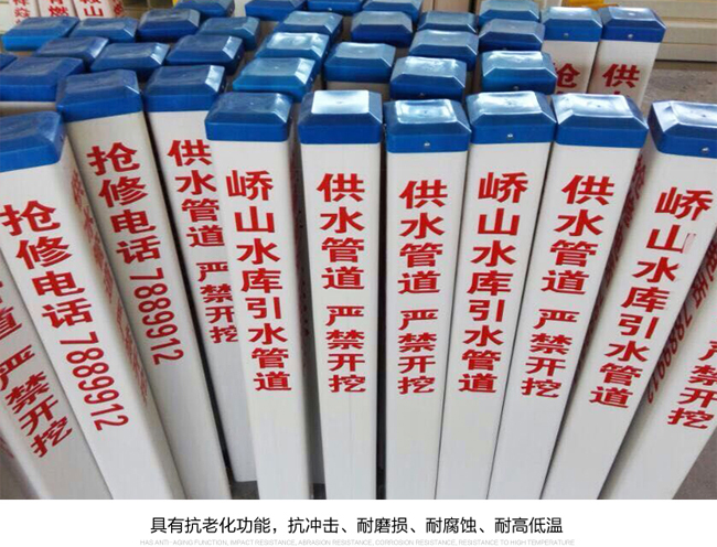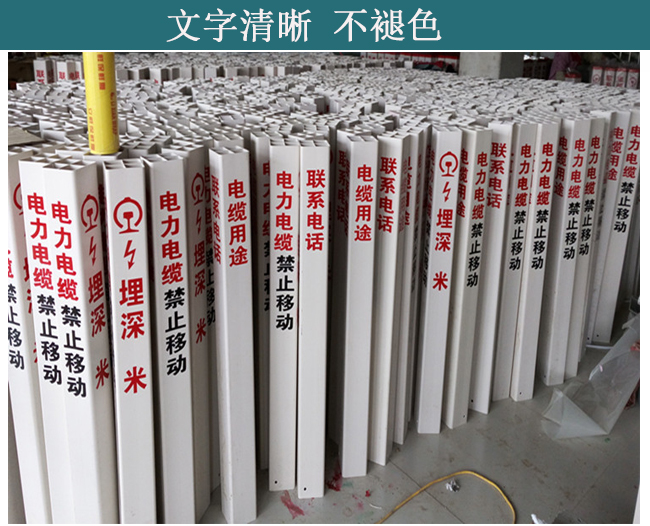 電力標示樁之所以受到廣大客戶的認可和好評的其中一個原因就是它的警示性效果好,它的使用年限長,樁體顏色不會褪色,上面的標識和字跡都可以永久存在,這樣就可以讓行人在很遠的地方看到要表達的意思。