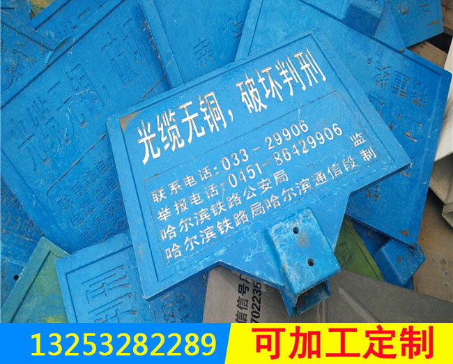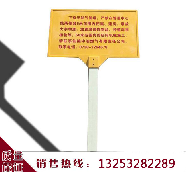 景區園林保護標志牌是用玻璃纖維及其制品來作為增強材料,以合成的樹脂作為基體材料經過高溫壓制而成的。玻璃鋼標志牌有抗沖擊,耐磨損,耐高溫,耐腐蝕,重量輕,防盜,安裝方便,強度高等特點。它沒有回收的價值,自然防盜,可以有效的解決地下重要設施被挖掘的問題。