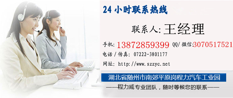 24小湖北程力專用汽車有限公司其主導品種有灑水車、售貨車.油罐車、垃圾車、吸糞車、吸污車、自卸車、廂式貨車、LED廣告車、半掛車、清障車、2噸-200噸隨車吊、高空作業(yè)車、教練車、冷藏車、高壓清洗車、鮮活魚運輸車、散裝水泥車、無危害處理車 、化工車、消防車、汽車配件、水泥攪拌車、牽引車等十八大系列300多個品種車型。時財富熱線138-7285-9399王先生