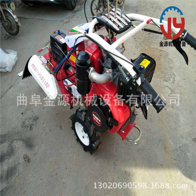 本機器包括機架、可調高低扶手,機架上設有(風冷或水冷)柴油機或汽油機、機架和扶手上設置有變速箱,變速箱的輸出軸上設置有能夠沿軸移動的驅動輪或鏈軌.傳動方式主要有:全齒輪傳動、皮帶傳動、鏈條傳動三種傳動方式.該機具有重量輕,油耗低、相對功率大,結構緊湊、機動性強、操縱輕便靈活的特點。可爬坡、越埂、階梯性強。廣泛適用于平原、山區、丘陵的旱地、水田、果園、菜地、煙地的深旋耕、淺旋耕、犁耕。配上相應機具可進行旱地旋耕、水田旋耕、抽水、開溝、噴淋、噴藥除草碎土等作業,還可牽引拖車進行短途運輸,是大中型農機無法媲美的多功能,工作穩定可靠、使用壽命長、維修方便等特點。是進入農民家庭理想的田園管理機。