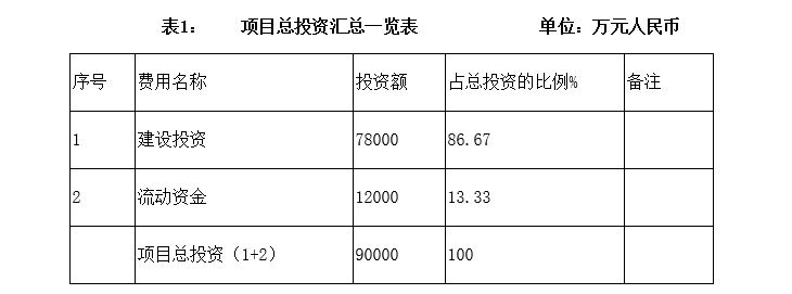 項目總投資90000萬元,其中建設(shè)資產(chǎn)投資78000萬元。
