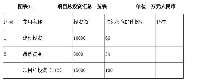 項目總投資15000萬元,其中固定資產投資10000萬元。