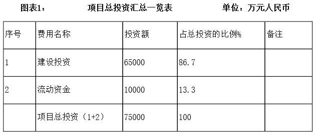 項目總投資75000萬元,其中固定資產投資65000萬元。