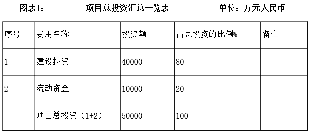 項目總投資50000萬元,其中固定資產(chǎn)投資40000萬元。