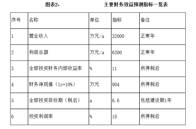 項目達產后,預計營業收入32000萬元,利潤6300萬元,投資回收期6.6年(稅后,含建設期1年),投資利潤率18%。