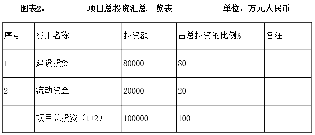 項目總投資100000萬元,其中固定資產投資80000萬元。