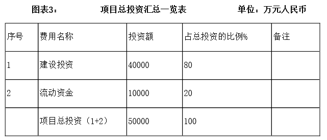 項(xiàng)目總投資50000萬元,其中固定資產(chǎn)投資40000萬元。