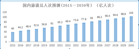 根據(jù)國際旅游規(guī)律,人均GDP達(dá)到5000美元時,就會步入成熟的度假旅游經(jīng)濟(jì),休閑需求和消費(fèi)能力顯著增強(qiáng),而2015年我國人均GDP為5.2萬元,約合8016美元,但人均出游才為2.98次,離發(fā)達(dá)國家居民每年出游8次以上還有很大差距。按中等增長速度測算,到2030年,中國將形成超百億人次的世界上最大規(guī)模的國內(nèi)旅游市場。