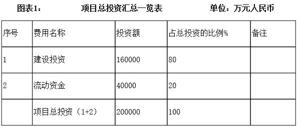 項目總投資200000萬元,其中固定資產投資160000萬元。