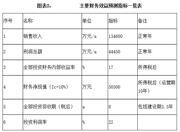 項目達產后年銷售收入134600萬元,利潤44450萬元,投資回收期8年(稅后,含建設期3.5年)投資利潤率22%。