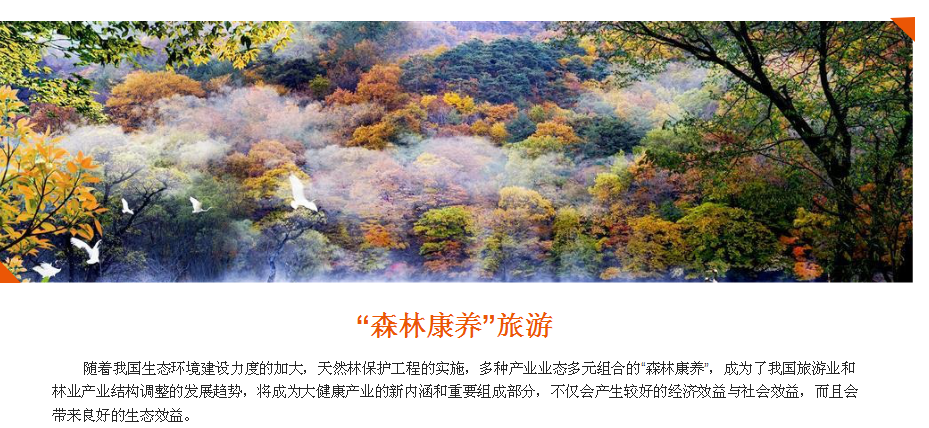 我國森林物質資源豐富,森林面積有2.08億公頃,森林覆蓋率達到21.6%,對于森林康養的發展有得天獨厚的優勢。自2012年,北京率先引入森林康養概念,各地加快了森林康養設施的建設,森林旅游是我國林業草原三大支柱產業之一。2018年,全國森林旅游創造社會綜合產值8500億元,同比增長13%,在踐行“綠水*青山就是金山銀山”理念、助力鄉村振興和精準扶貧、助推生態文明和美麗中國建設中發揮了越來越重要的作用。