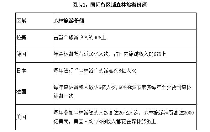 國外森林旅游形勢大好,在整個旅游產業中占據較高的份額。