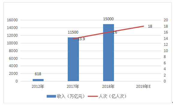 圖表2:2012-2019森林旅游直接收入和旅游游客