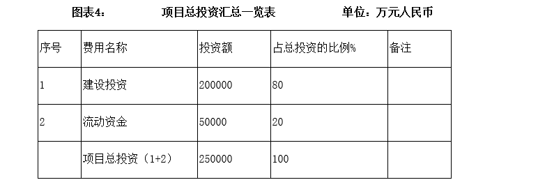 項目總投資250000萬元,其中固定資產投資200000萬元。