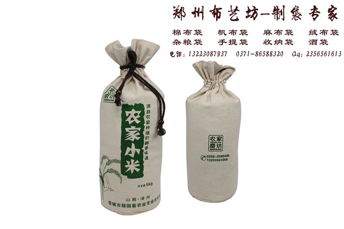 南宮粗布五谷袋定制 個性新品大米包裝袋這種用布藝制作出來的雜糧袋作為禮品送給親朋好友也是不錯的選擇。可能很多人都知道小米是五谷雜糧中唯一一種堿性食品,小米中含有大量的蛋白質、維生素、胡蘿卜素、脂肪、碳水化合物、鐵等多種人體中必要的微量元素,煮成粥還有養心安神的作用。將這樣健康的禮品送給親朋好友比送煙酒更合適。既然作為一種健康的禮品,就要配一個健康的包裝,帆布環保袋就是你不二的選擇。一個盛滿金黃小米的帆布袋,給人以完全來自于大自然的感覺。是您不錯的選擇。鄭州布藝坊專業生產各類布藝小米袋、大米袋、雜糧袋,歡迎您的咨詢與選購!!! 南宮粗布五谷袋定制 個性新品大米包裝袋