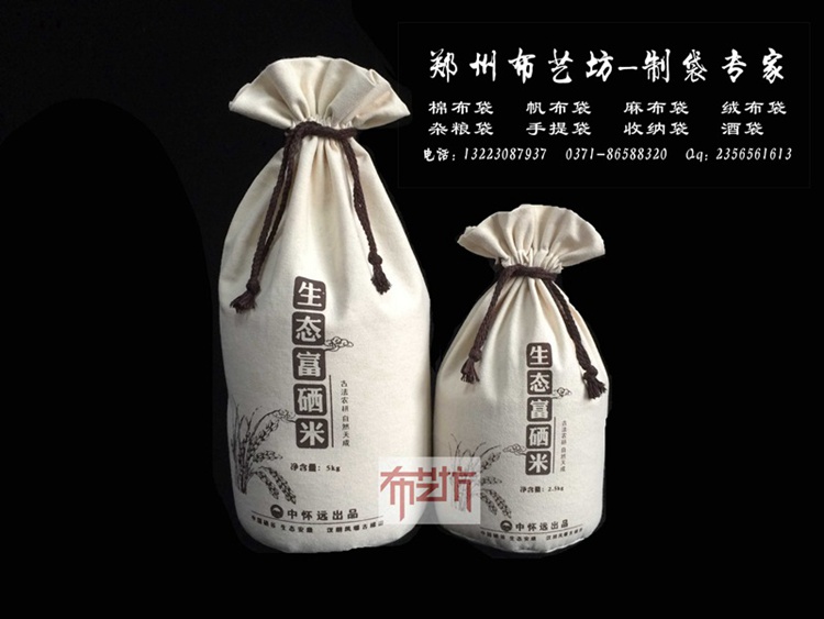 鄭州布藝坊是一家專業定做各類布藝包裝的廠家,我們制作出的一系列的雜糧創意設計包裝袋多年來深受客戶的的喜愛,那么都有什么類型的包裝呢?簡單為您介紹一下吧:有大米袋、小米袋、黑米袋、面粉袋、玉米面袋、綠豆袋、黃豆袋、花生袋、核桃袋等等之系列的束口袋,根據材質的不同又分為棉布袋、帆布袋、麻布袋等。款式也是多種多樣的,有束口拉繩袋、魔術貼袋、頂抽袋、單抽袋、雙抽袋等。在這些雜糧袋的上面都可以根據您的自身要求來印刷精美的圖案和企業logo,為您的產品做宣傳。我們創意無限,只要您有需求,我們將著力為您開發一款適合您產品的包裝。