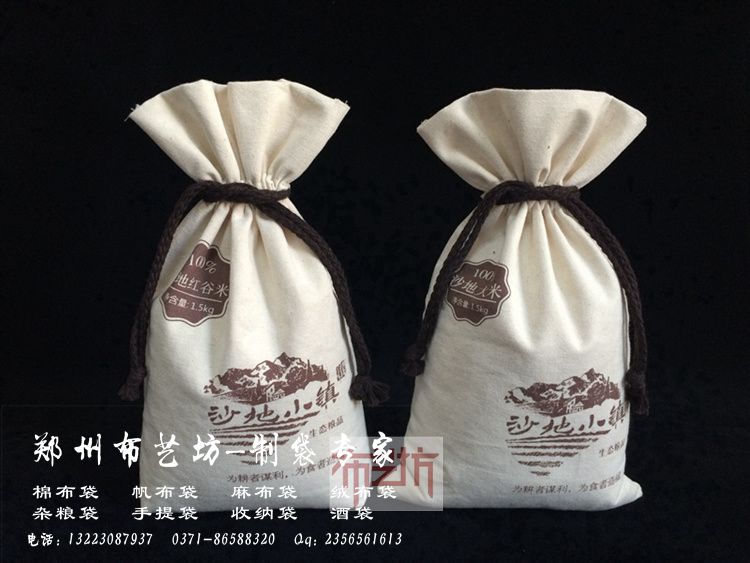 束口圓底雜糧袋定制 廠家訂做帆布面粉苦蕎袋現在的人們越來越講究生活的品質,回歸自然成了眾多人生活的追求。很多的東西都在向著復古的方向發展就連大米包裝袋也出現了復古風,從現代比較泛濫的塑料袋復古到各種復古布藝大米袋。無一不再不斷的變化與改進當中。下面給大家簡單介紹一下布藝坊制作的各類新款美觀大方的大米雜糧布袋,材質多為棉布、帆布和麻布,從價格上來講麻布最貴,帆布次之,棉布相對便宜,麻布本身的的顏色就類似與樹木所做出來的麻布袋給人的感覺就是古樸自然的,自身就帶著一種復古的感覺;而帆布和棉布用來制作大米雜糧袋的都是本白色的能夠給人以環保天然之感,具體的選用哪一種材質來制作大米雜糧袋可根據產品賣點來進行合理的選擇。束口圓底雜糧袋定制 廠家訂做帆布面粉苦蕎袋