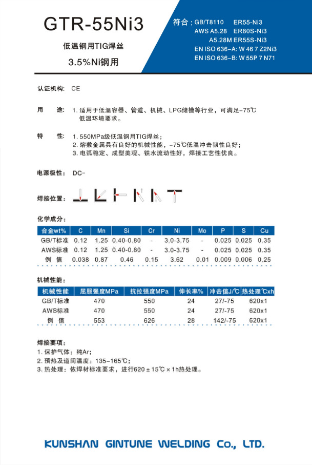 當前位置: 首頁 » 供應產品 » 焊接材料 » 焊絲 »昆山京雷GTR-55Ni3低溫鋼焊絲ER80S-Ni3低溫鋼氬弧焊絲