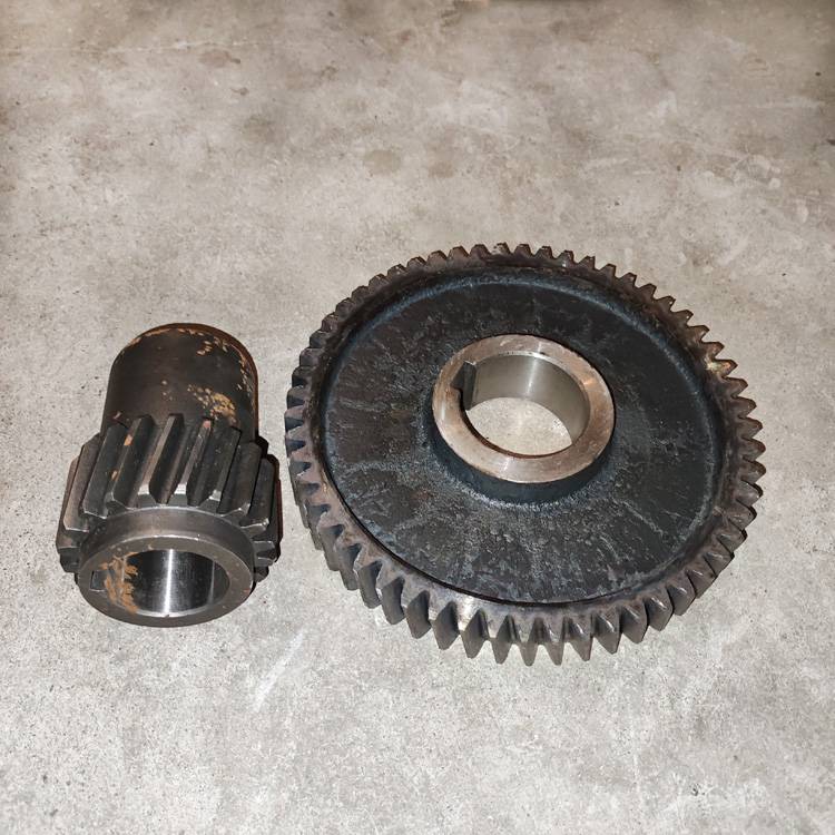 混凝土JS1000型攪拌機和JZM1000型攪拌機的上料斗提升電機減速機里用的齒輪,提升機變速箱齒輪軸配件。18齒斜齒,兩頭軸承位直徑55mm,鍵槽寬16mm,長度約140mm,齒輪淬火結實耐用。攪拌站1方攪拌主機,滾筒式JZM1000和雙軸強制JS1000型混凝土攪拌機提升上料斗配套的11/13/15KW提升箱電機的減速機,也叫齒輪變速箱,提升箱為齒輪構造,電機軸齒輪為20齒斜齒,另外有斜齒56齒盤齒一輪,斜齒51齒盤齒二輪,直齒44齒盤齒三輪,斜齒18齒一軸,直齒15齒二軸,及光面輸出軸。齒輪淬火處理結實耐用,輸出軸上安裝有纏繞鋼絲繩的繩輪筒。