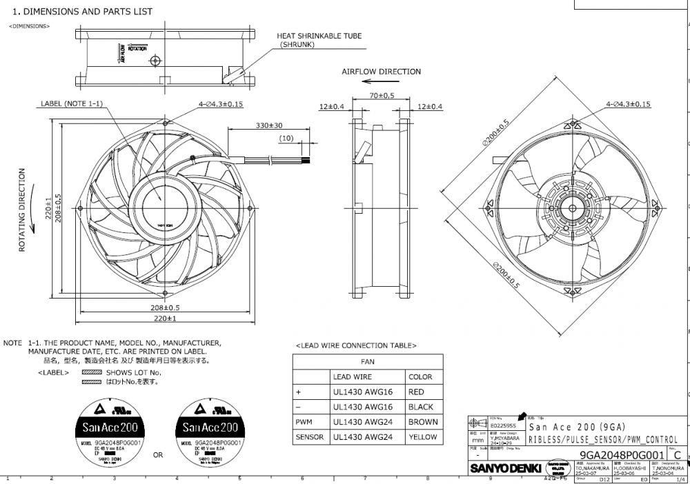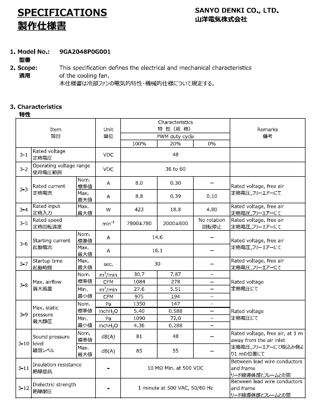 SANYO DENKI San Ace 200 9GA2048P0G001 DC48V 8.0A 山洋暴力風扇AI服務器風扇TEL:13910098771