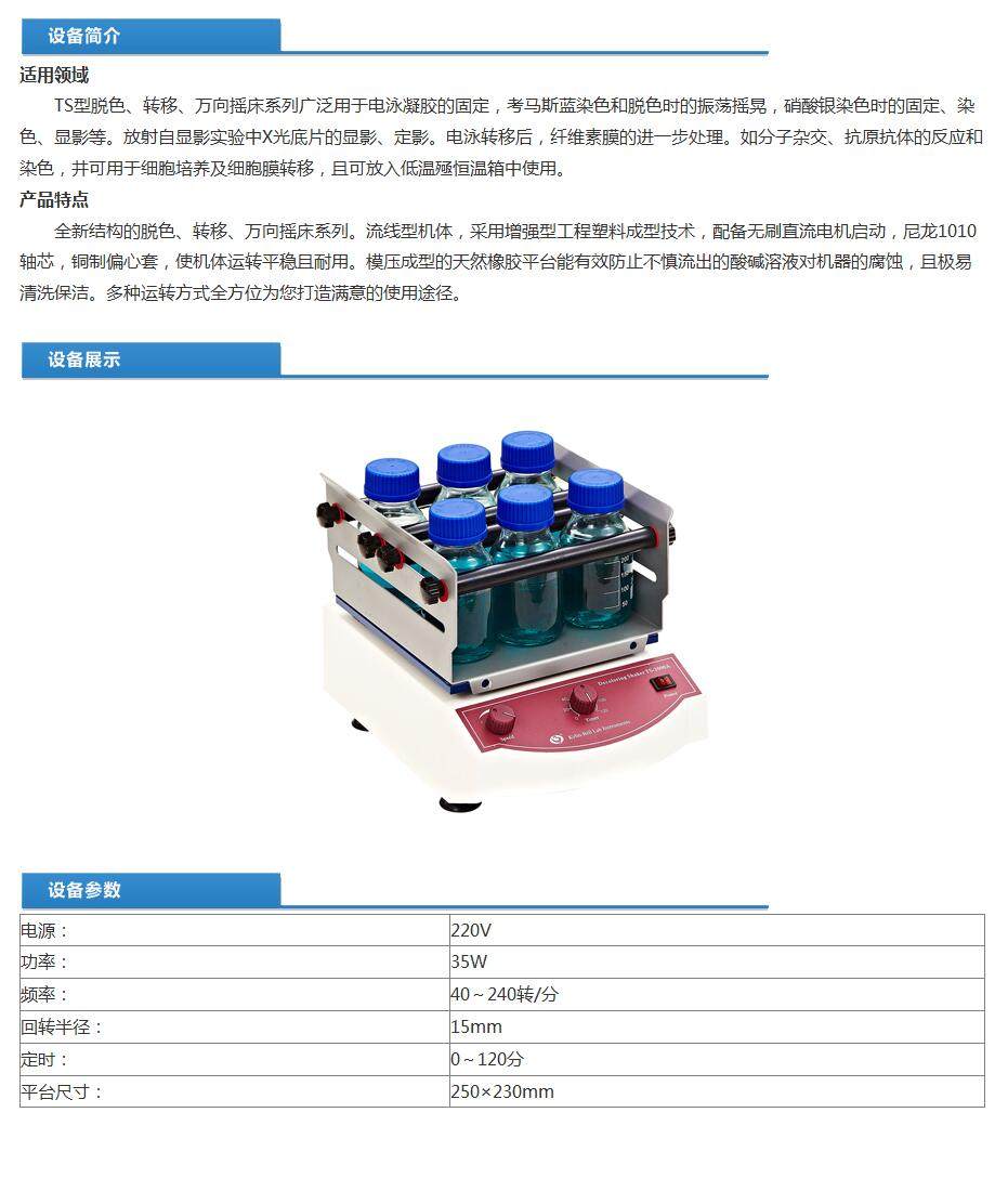其林貝爾多用脫色搖床TS-2000A(帶搖瓶架)40-240轉/分