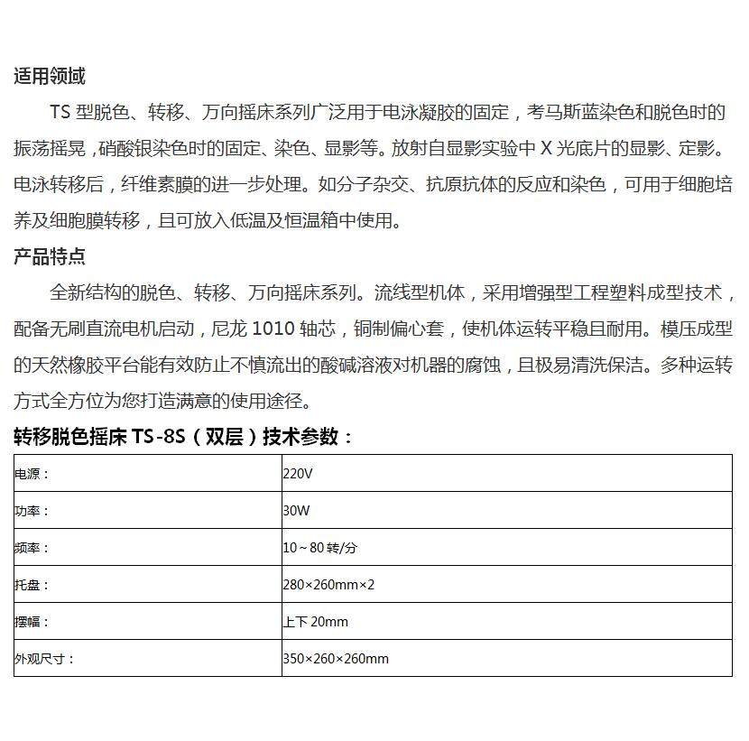 當前位置: 首頁 » 供應產品 » 儀器儀表 » 科學儀器/實驗儀器 »TS-8S 雙層轉移脫色搖床:雙層并行操作,實驗效率翻倍更省心