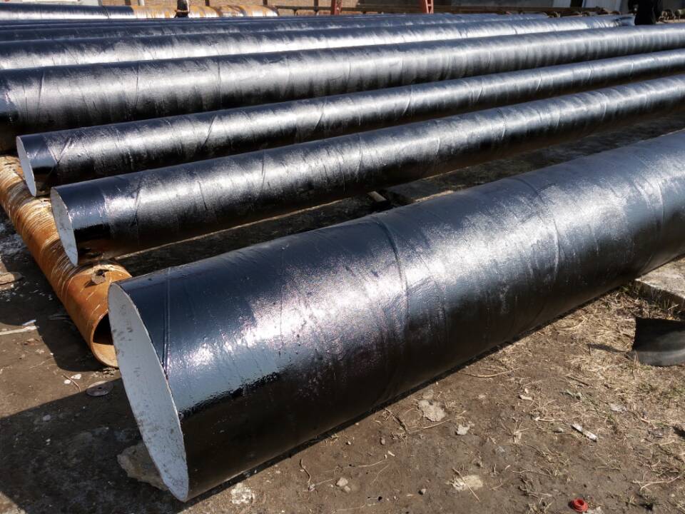 環氧煤瀝青防腐螺旋鋼管就是我們常說的幾布幾油,常見的有一布兩油防腐鋼管,三油兩布防腐鋼管,五油三布防腐鋼管,七油四布防腐鋼管。環氧煤瀝青防腐螺旋鋼管組份為環氧煤瀝青底漆和面漆,都是以環氧樹脂和煤瀝青為主要成膜物,添加各種防銹顏料、絕緣性填料、增韌劑、流平劑、稀釋劑、防沉劑等制成。外觀:底漆甲組分鐵紅色,乙組分黑色,面漆均為黑色。具有優異的耐化學介質腐蝕性和良好的物理機械性能,粘結力好,涂膜堅韌,并有優異的電絕緣性和抗滲透性,抗雜散電流和抗微生物侵蝕性,成膜后,可減少施工道數。主要的執行標準SY/T 0447-96《埋地鋼質管道環氧煤瀝青防腐層技術標準》和SY/T 0457-2000《鋼質管道液體環氧涂料內防腐層技術標準》。主要用于埋地或水下鋼質輸油、輸氣、供水、供熱管道的外壁防腐,也適用于各類鋼結構、碼頭、船舶、水閘、煤氣儲罐、煉油化工廠設備防腐及混凝土管、污水池、樓頂防水層、衛生間、地下室等混凝土結構的防水和防滲漏。